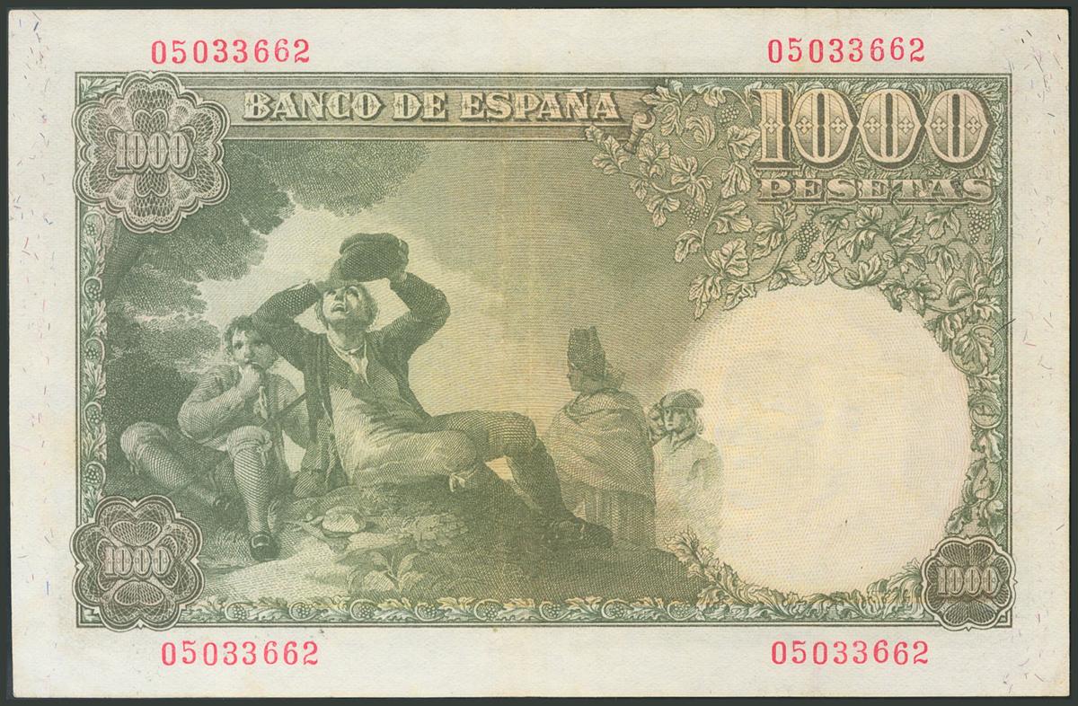 1000 Pesetas. 4 de Noviembre de 1949. Sin serie. Doblez vertical. (Edifil 2017: 458). Conserva gran parte del apresto original. EBC.