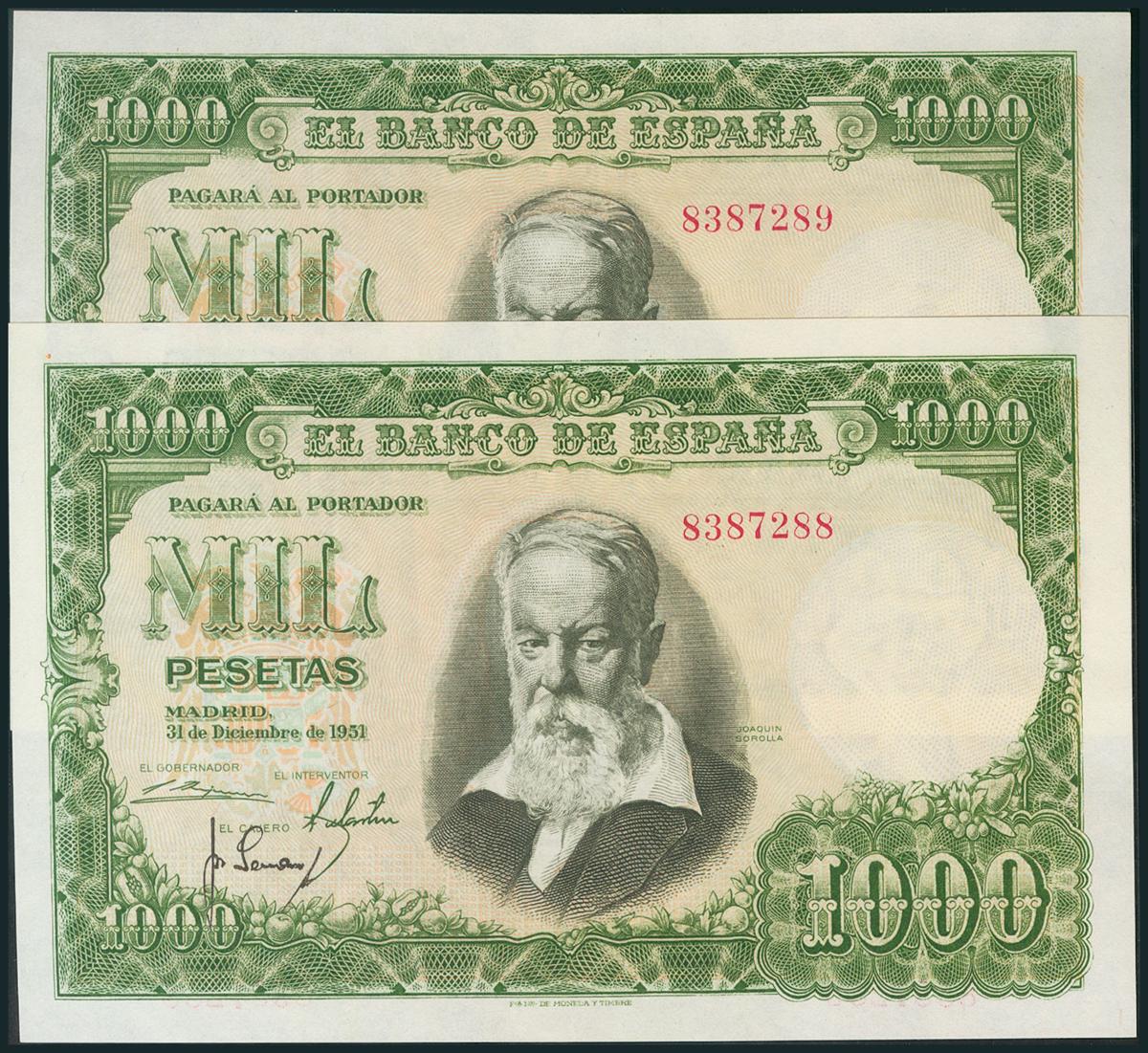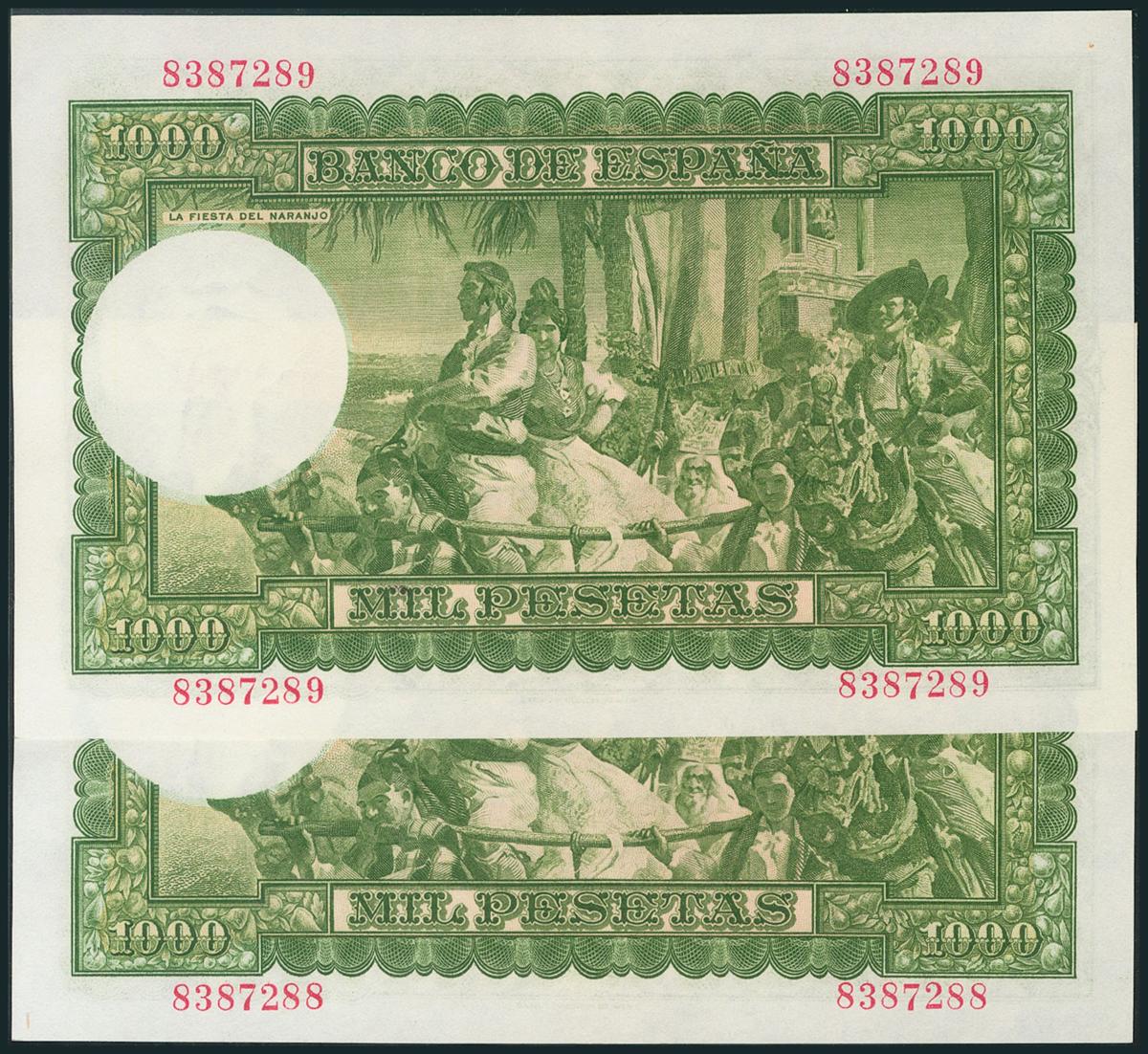 1000 Pesetas. 31 de Diciembre de 1951. Pareja correlativa. Sin serie. (Edifil 2017: 463). Apresto original. EBC+.