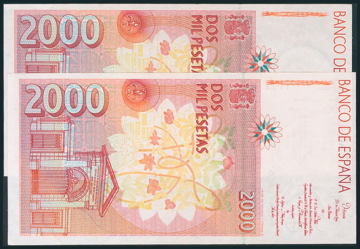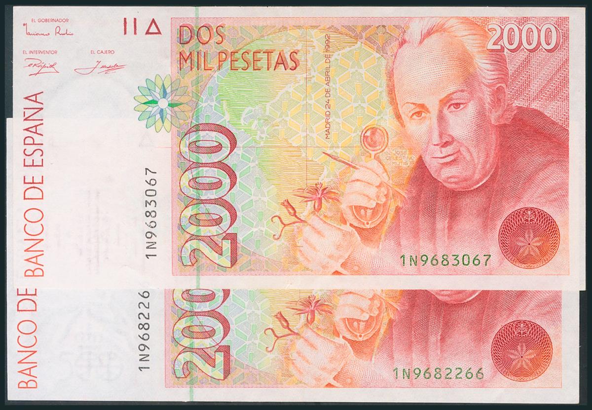 2000 Pesetas. 24 de Mayo de 1992. Pareja correlativa. Serie 1N. (Edifil 2017: 482a). EBC-.
