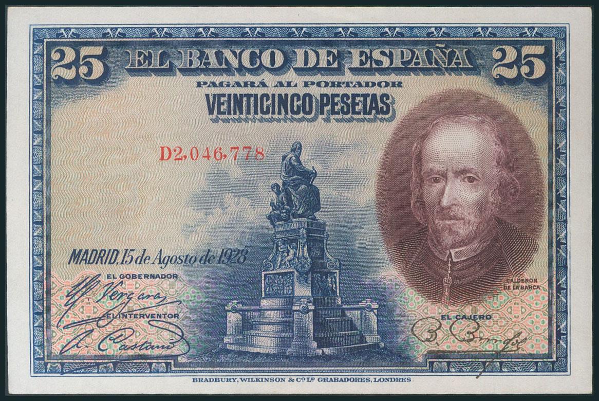 25 Pesetas. 15 de Agosto de 1928. Serie D. (Edifil 2017: 353). SC-.