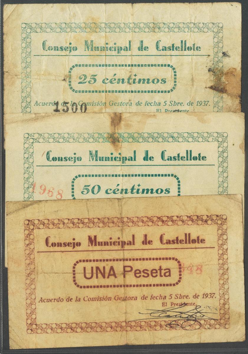 CASTELLOTE (TERUEL). 25 Céntimos, 50 Céntimos y 1 Peseta. 5 de Septiembre de 1937. (González: 1791/93). BC/RC.