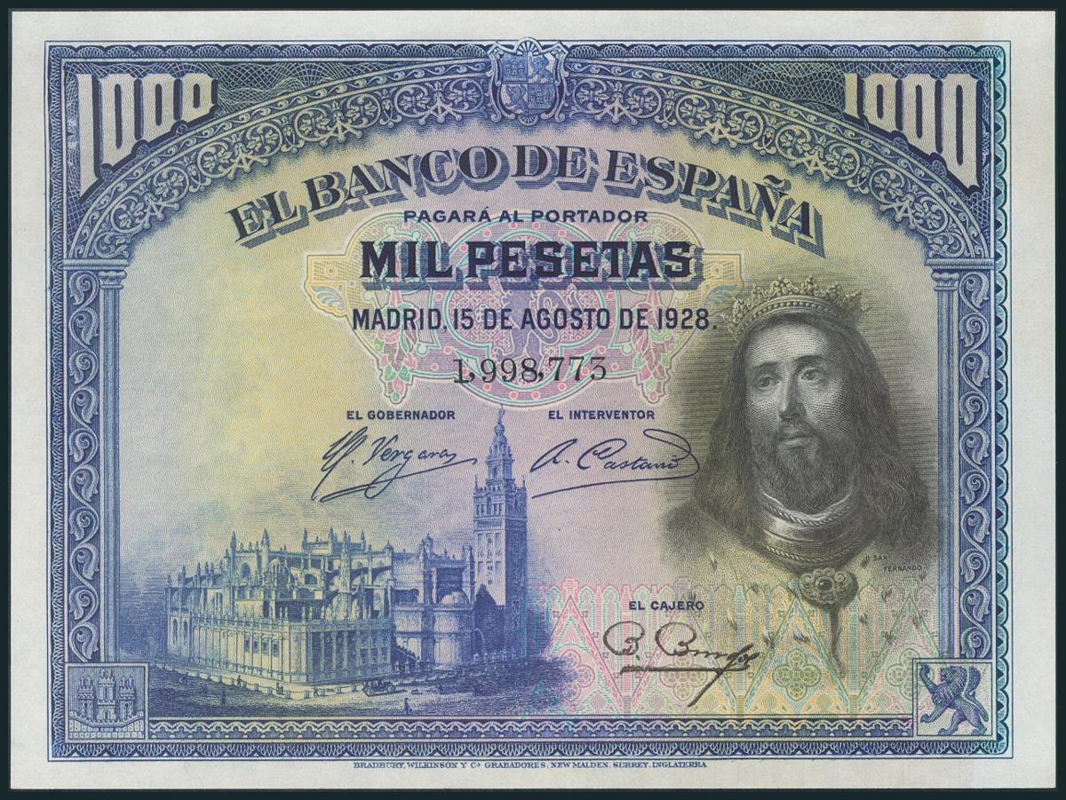 1000 Pesetas. 15 de Agosto de 1928. Sin serie. (Edifil 2017: 357). Apresto original. SC.