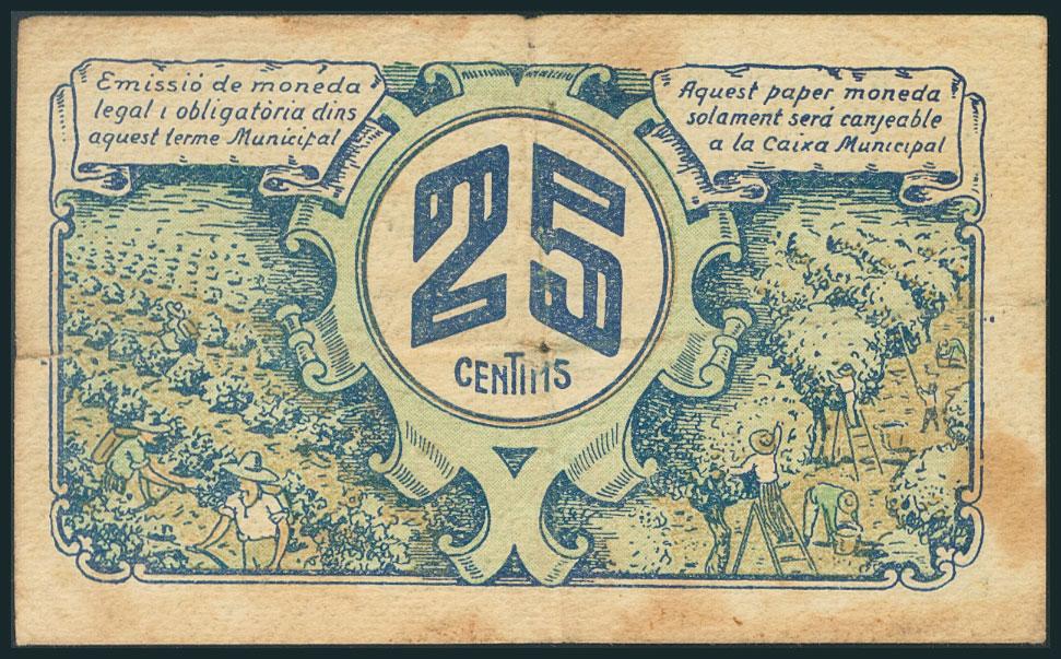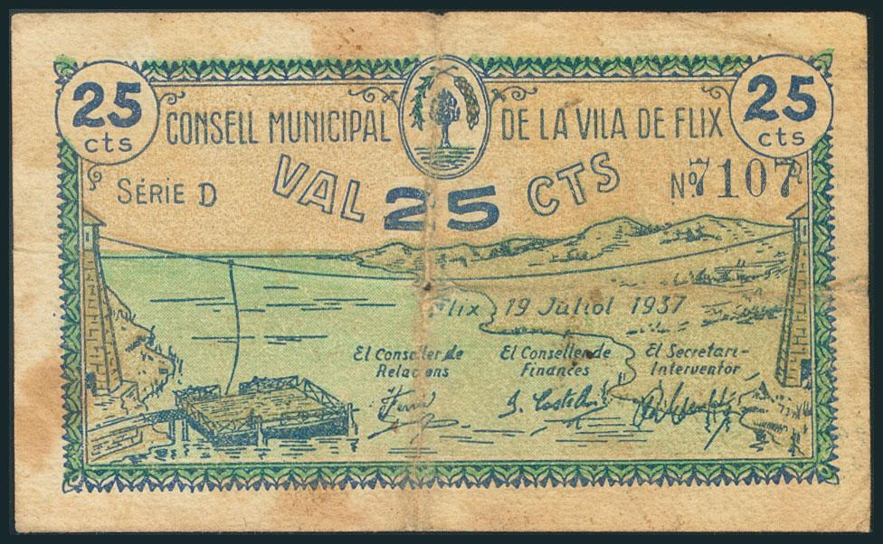 FLIX (TARRAGONA). 25 Céntimos. 19 de Junio de 1937. Serie D. (González: 7886). RC.