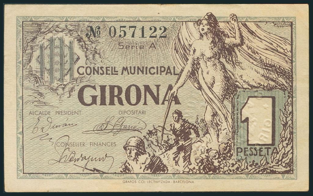GIRONA. 1 Peseta. Abril 1937. Serie A. (González: 8030). EBC.