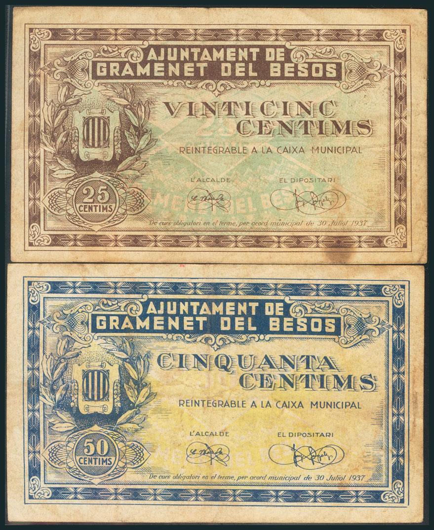 GRAMENET DEL BESOS (BARCELONA). 25 Céntimos y 50 Céntimos. 30 de Julio de 1937. (González: 8076/77). MBC.