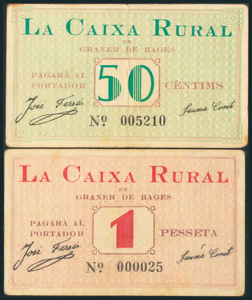 GRANER DE BAGES (BARCELONA). 50 Céntimos y 1 Peseta. (1938ca). (González: 8096/97). Raros. MBC.