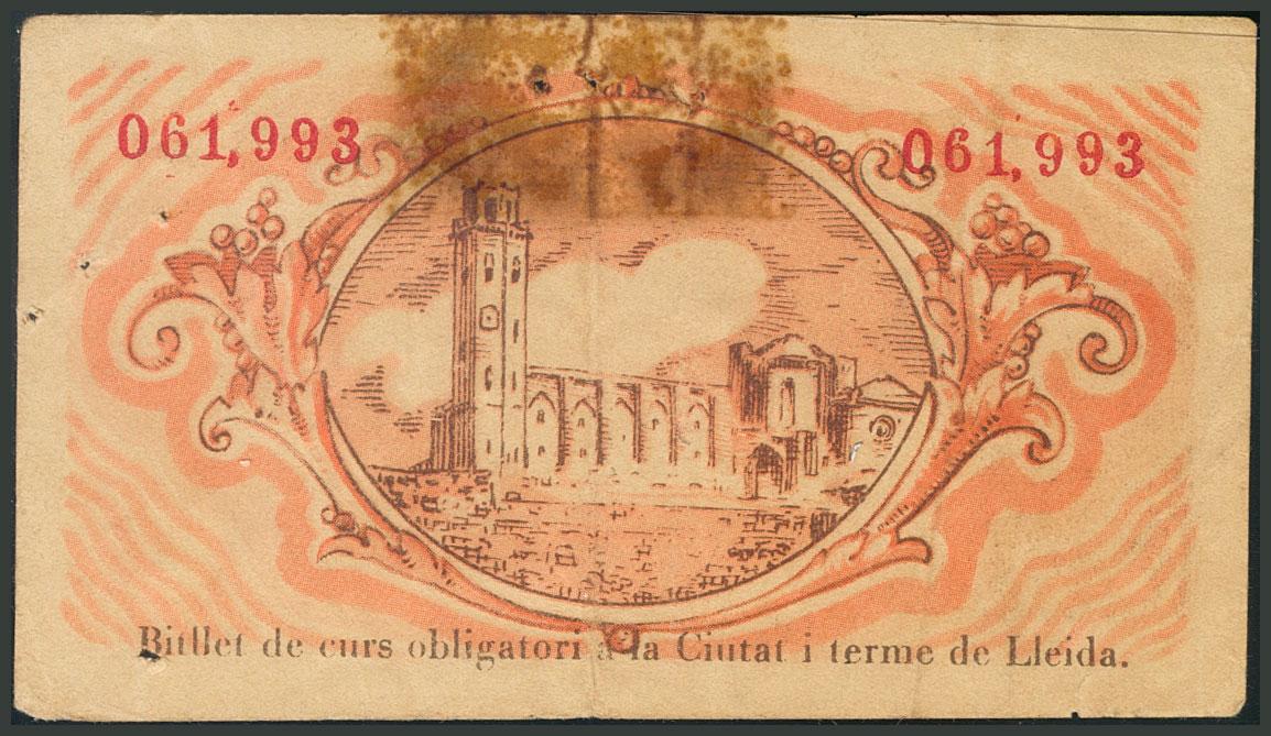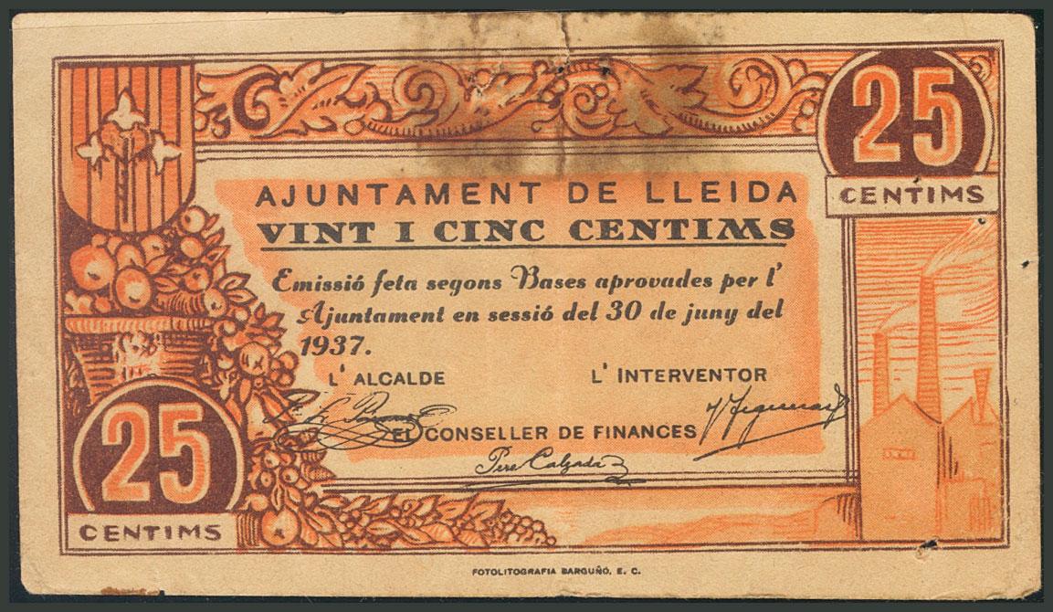LERIDA. 25 Céntimos. 30 de Junio de 1937. (González: 8358). BC.