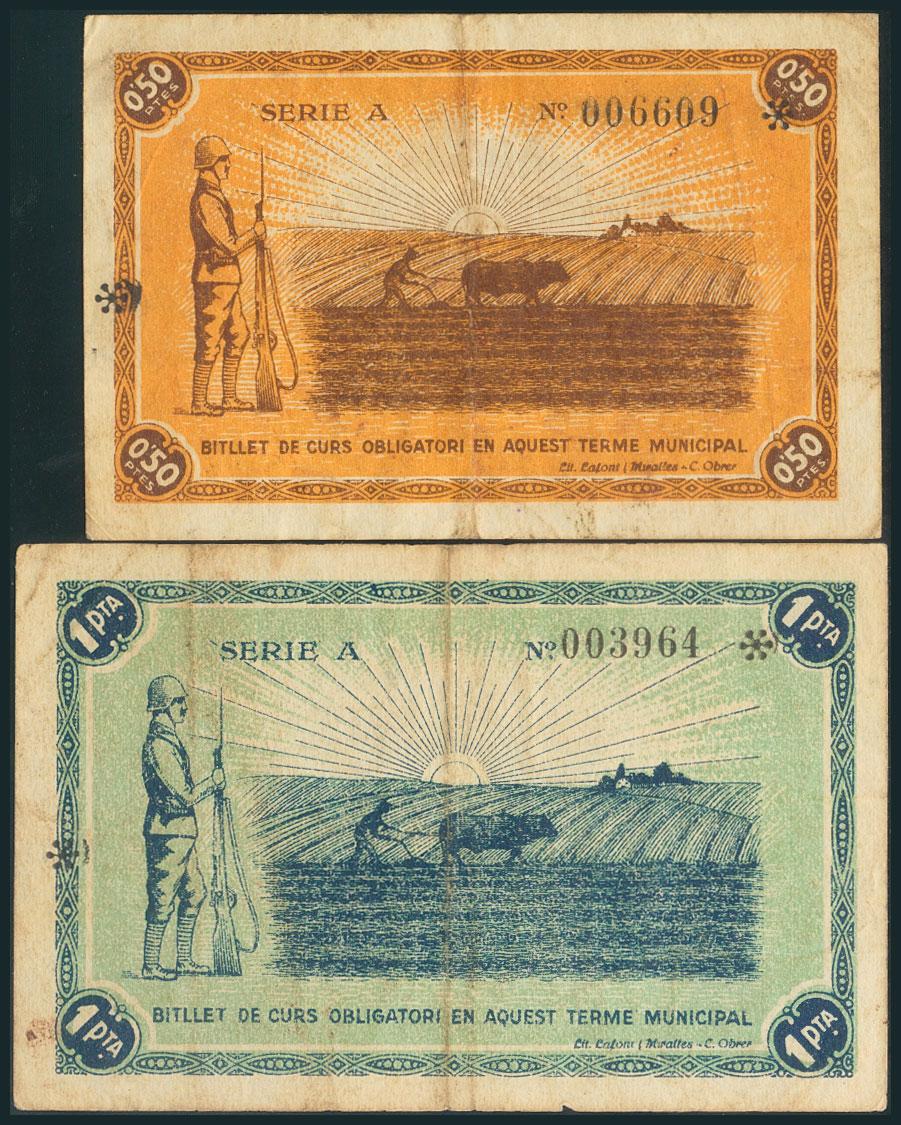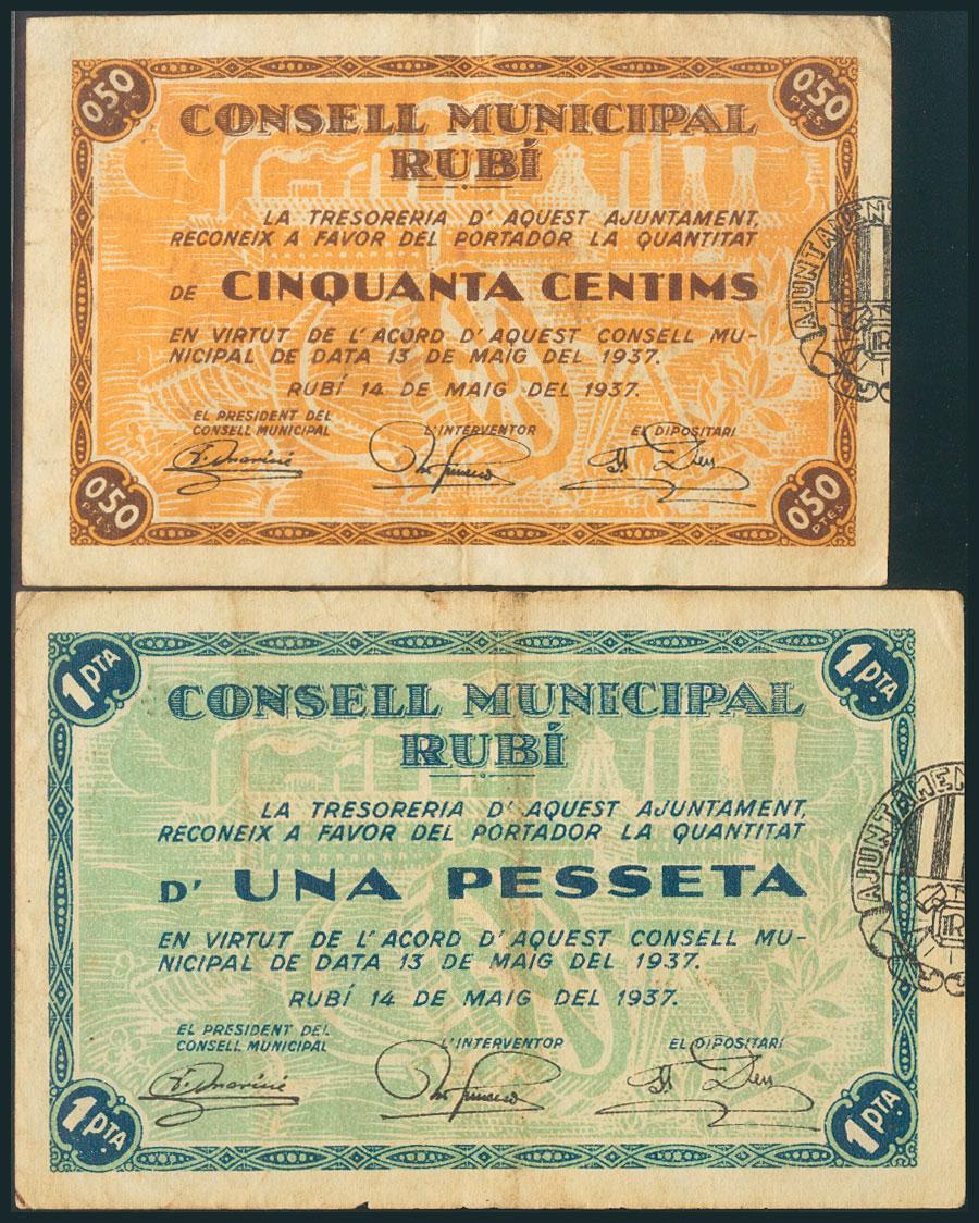 RUBI (BARCELONA). 50 Céntimos y 1 Peseta. 13 de Mayo de 1937. (González: 9759, 9761). BC.