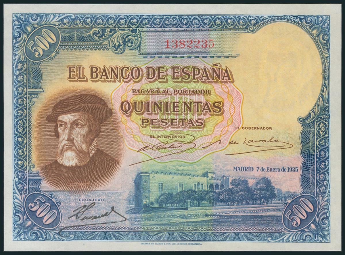 500 Pesetas. 7 de Enero de 1935. Sin serie. (Edifil 2017: 365). Apresto original. SC.