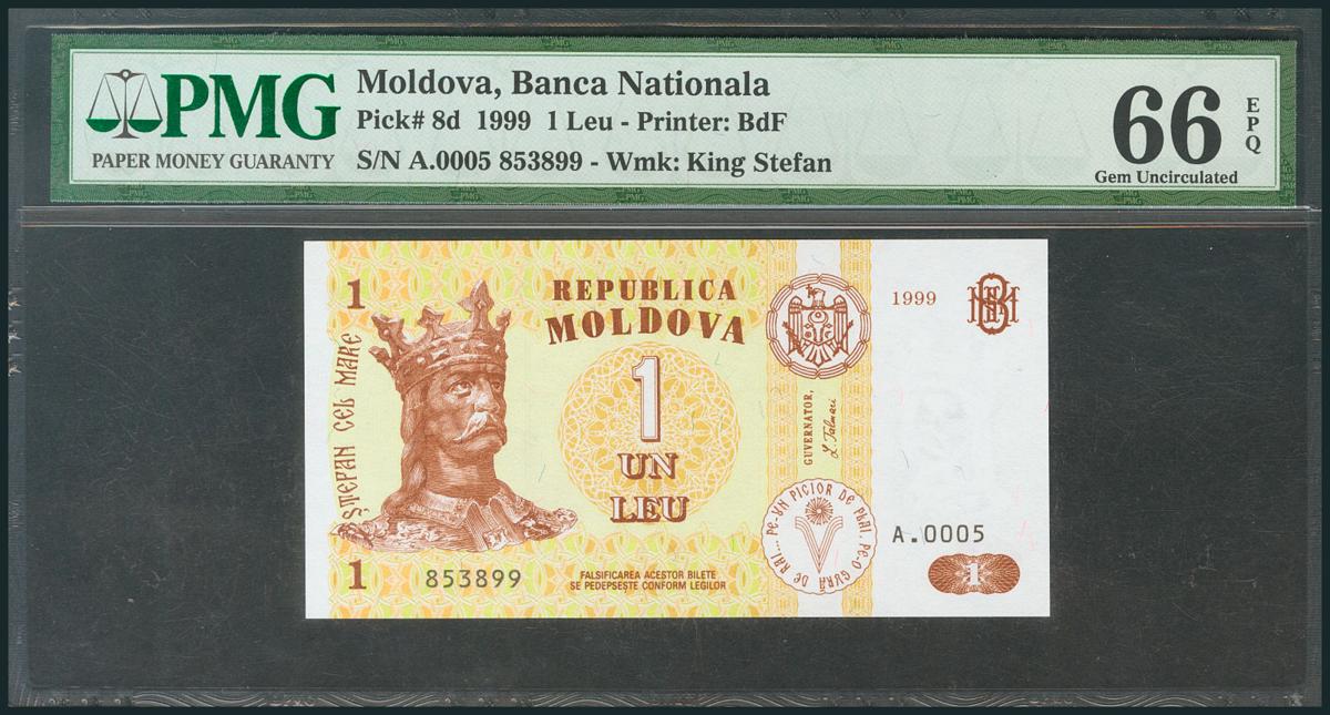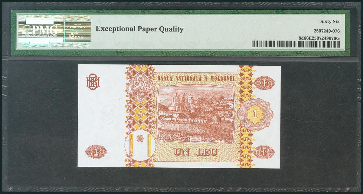 MOLDOVA. 1 Leu. 1999. Serie A. (Pick: 8d). Apresto original. Encapsulado PMG66EPQ. SC.