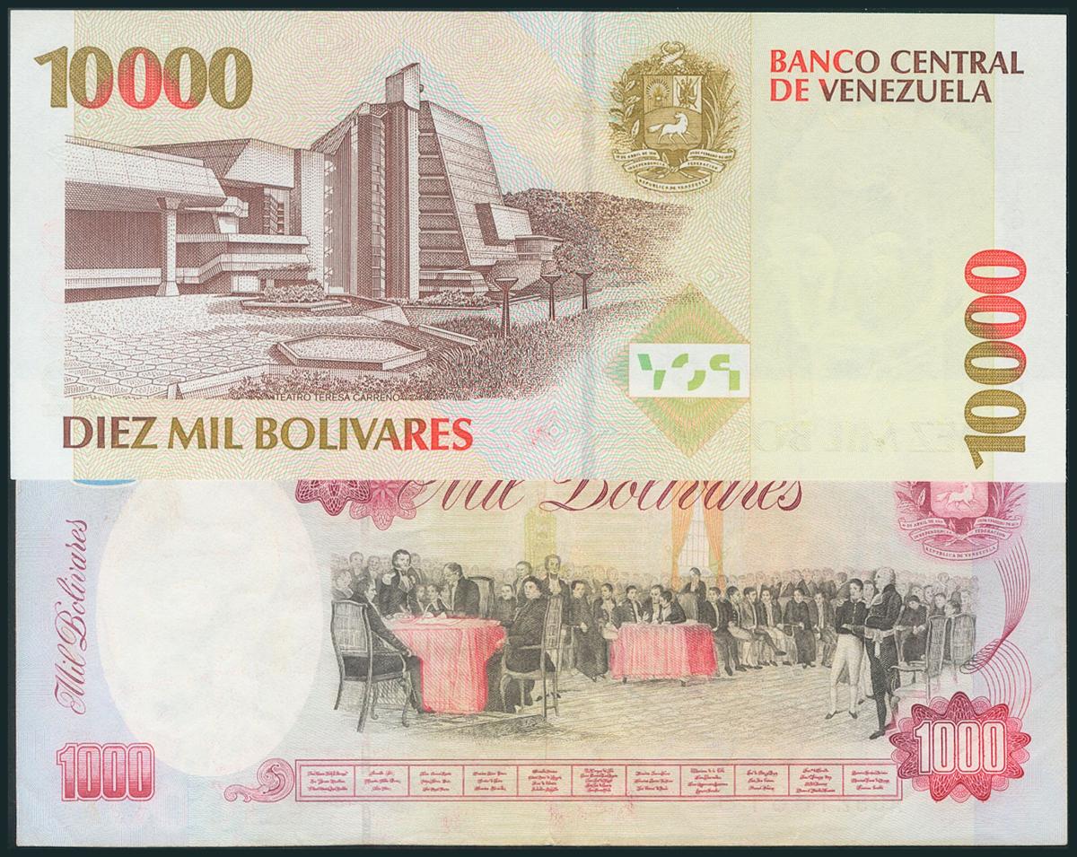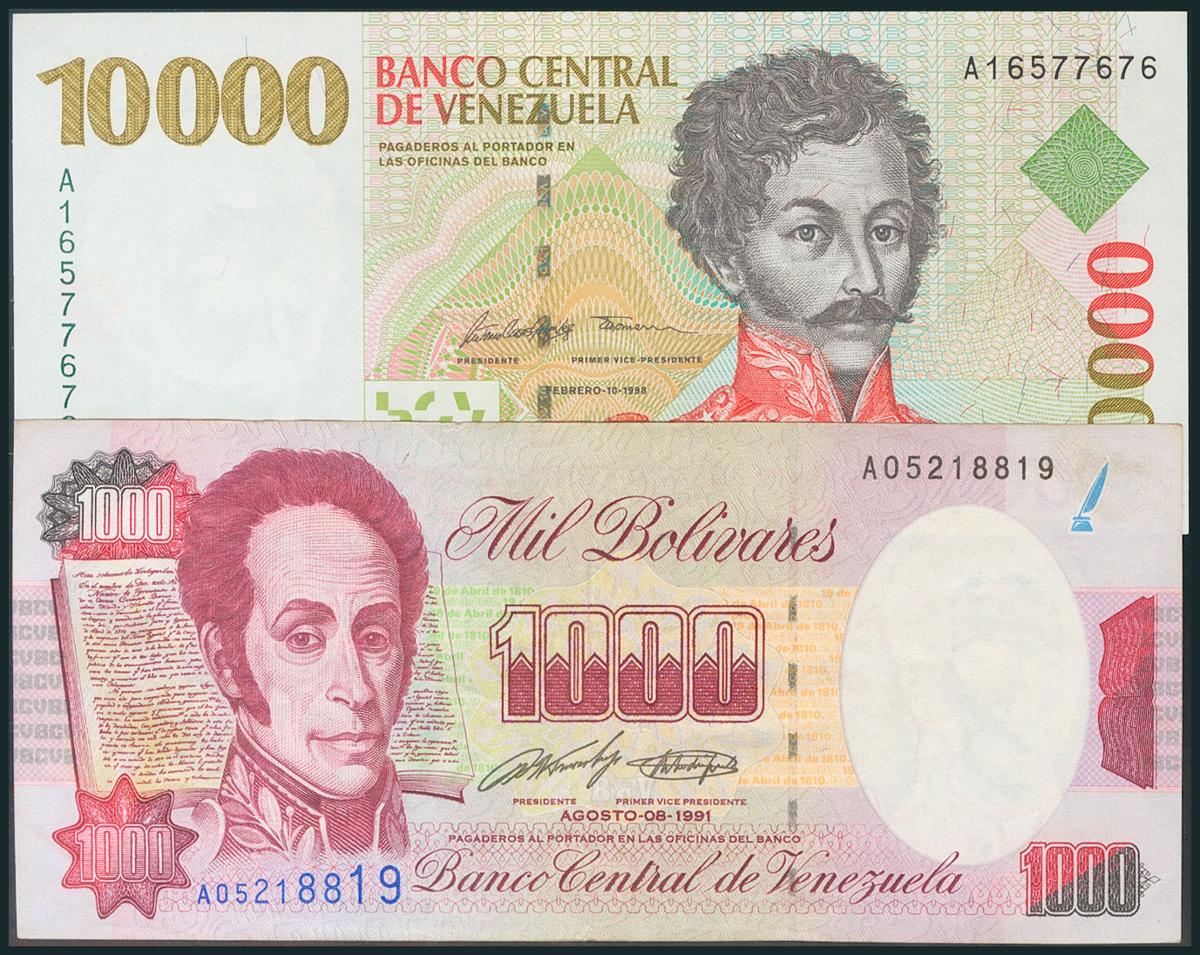 Conjunto de 2 billetes venezolanos emitidos el 8 de Agosto de 1991 y el 10 de Febrero de 1998, ambos con la serie A. SC/EBC-.