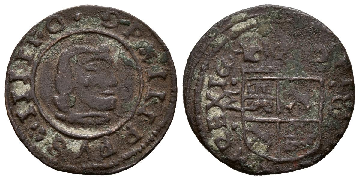 FELIPE IV (1621-1665). 8 Maravedís. (Ae. 1,39g/19mm). 166_. Madrid M. Falsa de época. (J. S. pág 429 var). MBC+/MBC.