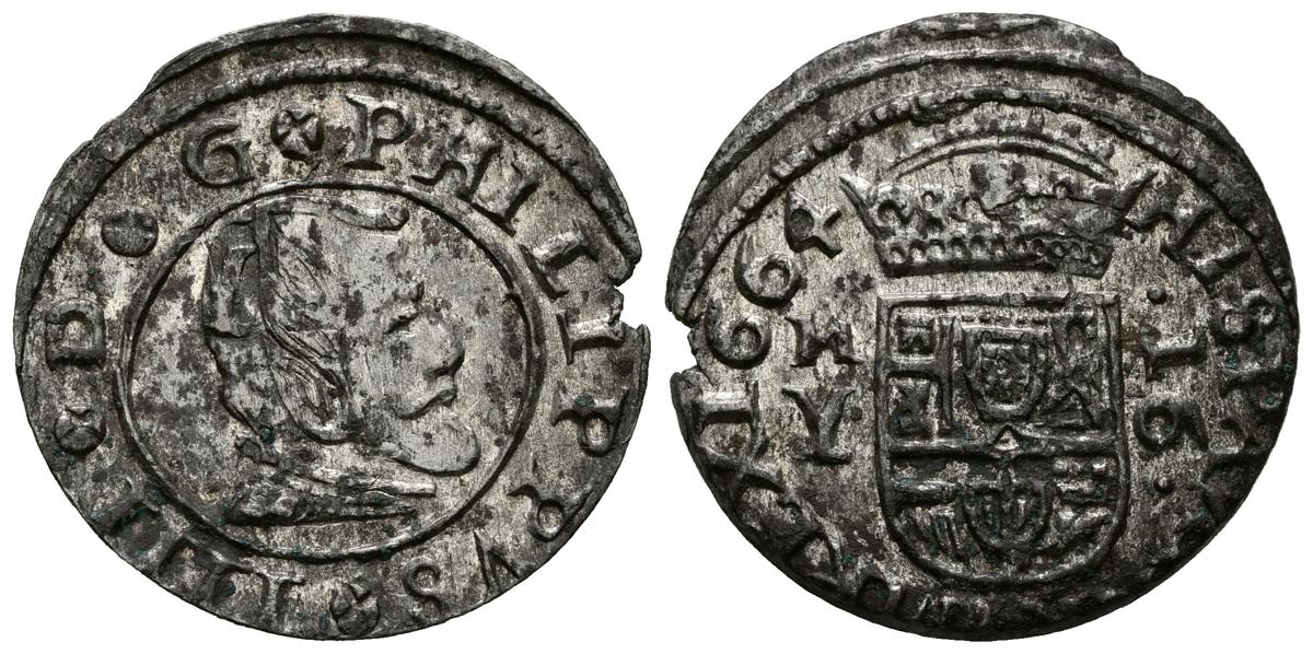 FELIPE IV (1621-1665). 16 Maravedís (Ve. 4,38g/26mm). 1664. Madrid Y. (Cal-2019-481 var). Variante: N invertida. EBC-/EBC+. Conserva plateado original. Magnífico ejemplar.