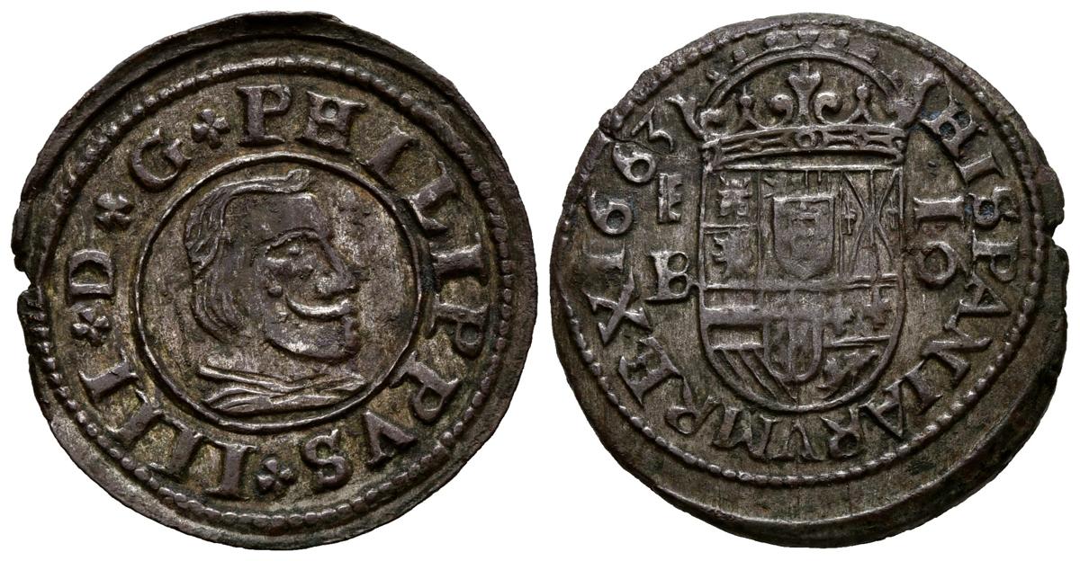 FELIPE IV (1621-1665). 16 Maravedís. (Ae. 4,11g/26mm). 1663. Segovia B. (Cal-2019-489). EBC-. Conserva parte del plateado original.