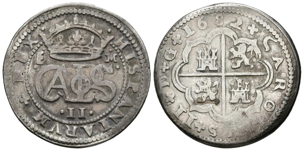 CARLOS II (1665-1770). 2 Reales. (Ar. 6,38g/26mm). 1682. Segovia. (Cal-442). MBC-.
