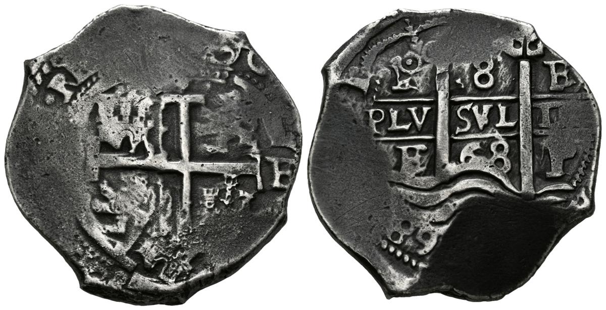 CARLOS II (1665-1700). 8 Reales. (Ar. 27,26g/37mm). 1668. Potosí E. (Cal-2019-699). Doble Fecha. MBC+/MBC.