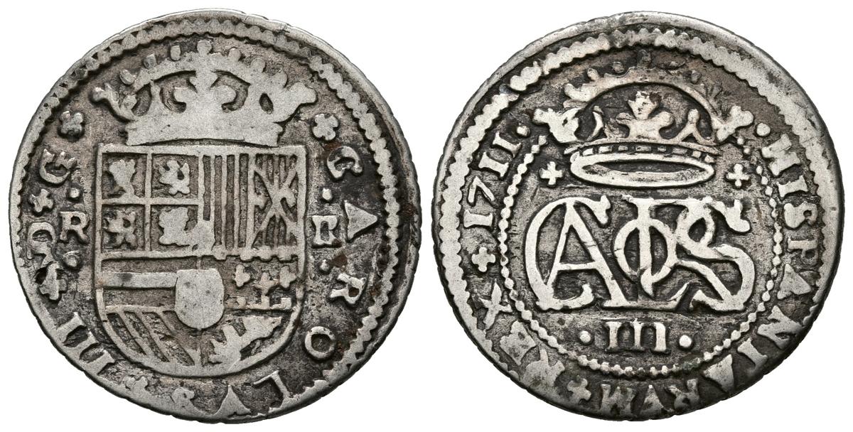 CARLOS III, PRETENDIENTE (1700-1714). 2 Reales. (Ar.4,84g/25mm). 1711. Barcelona. (Cal-2019-32). MBC-.