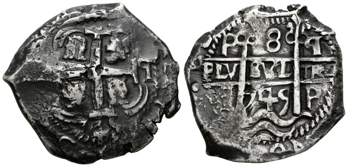 FELIPE V (1700-1746). 8 Reales. (Ar. 26,16g/32mm). 1745. Potosí Q. (Cal-2019-1588). Doble fecha. MBC+.
