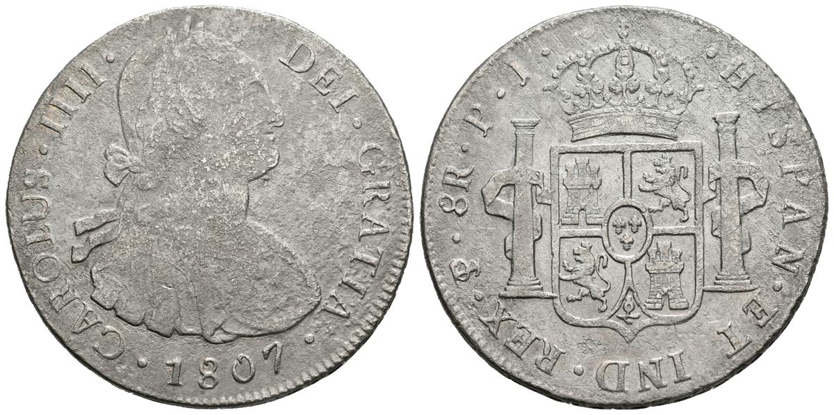 CARLOS IV (1788-1808). 8 Reales (Ar. 26,09g/40mm). 1807. Potosí PJ. (Cal-2019-1013). MBC-. Oxidaciones.