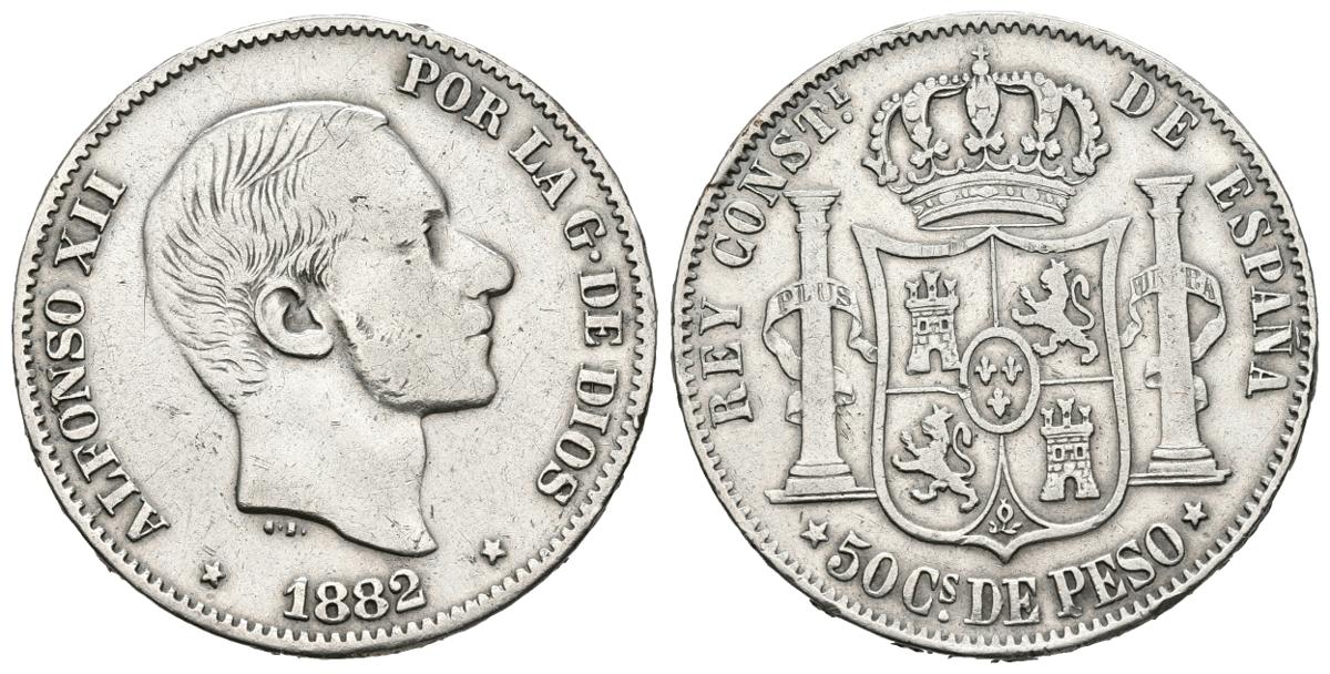ALFONSO XII (1874-1885). 50 Centavos. (Ar. 12,79g/30mm). 1882. Manila. (Cal-2019-120). MBC-.