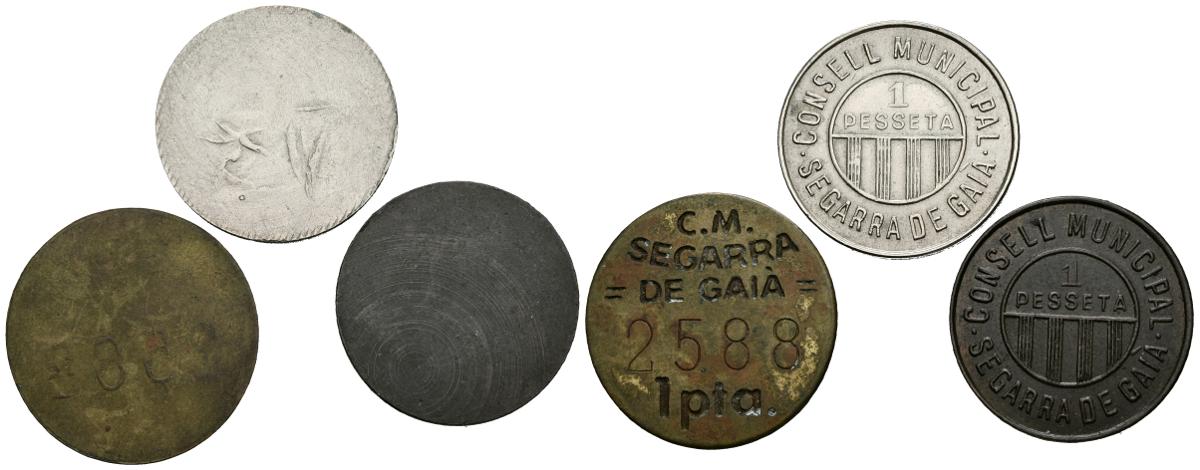 SEGARRA DE GAIA (Tarragona). Conjunto de 3 piezas de 1 peseta en diferentes materiales. S/D. (Cal-2019-36, 37 y 39). EBC. Raras.
