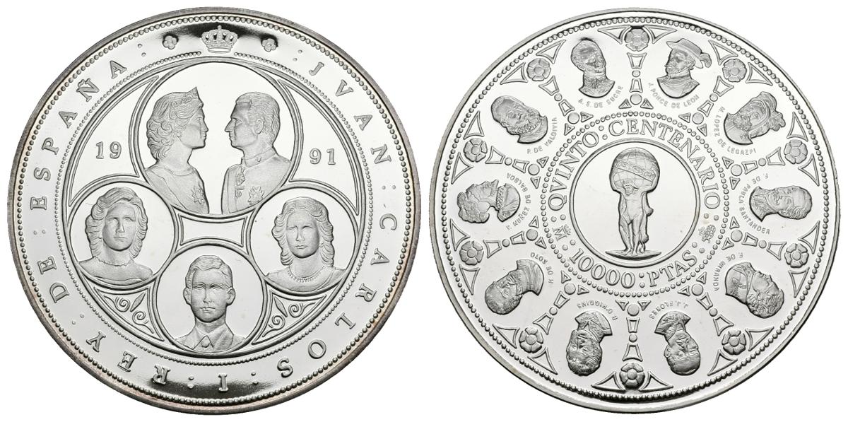 JUAN CARLOS I. 10000 Pesetas. (Ar. 168,75g/73mm). 1991. "V CENTENARIO ". PROOF. Presentada en estuche oficial con certificado.