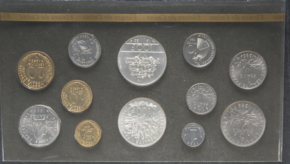 FRANCIA. Set de 11 monedas francesas de diferentes valores. 1986. FDC. Presentadas en estuche oficial.