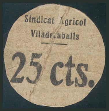 VILADECABALLS (BARCELONA). 25 cents. (1938ca). (González: 10697). Very rare. G.