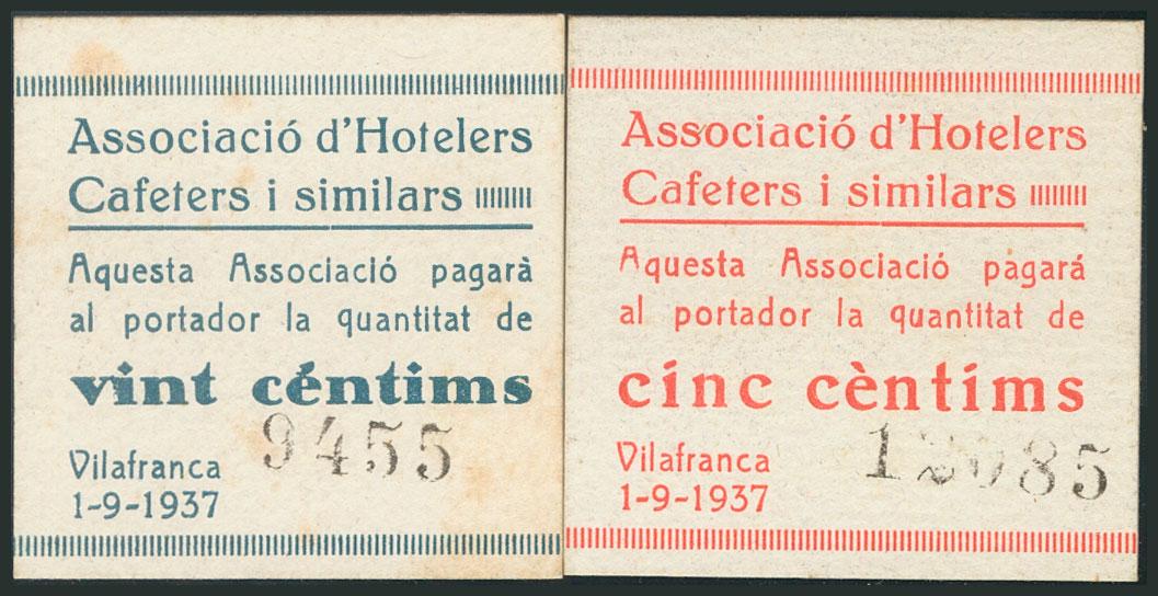 VILAFRANCA (BARCELONA). 5 Cents and 25 Cents. September 1, 1937. (González: 10714/15). Scarce AU.