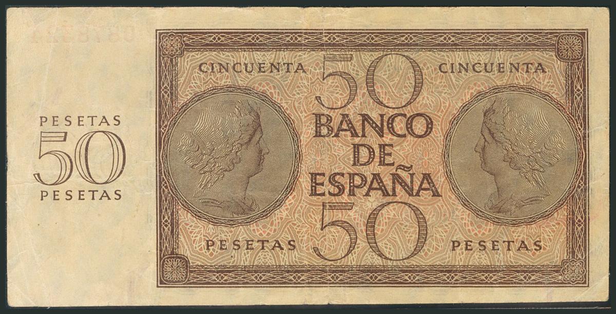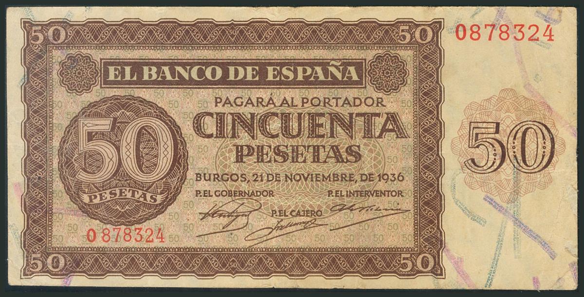 English 50 Pesetas. November 21, 1936. Series O. (Edifil 2017: 420a). BC +.