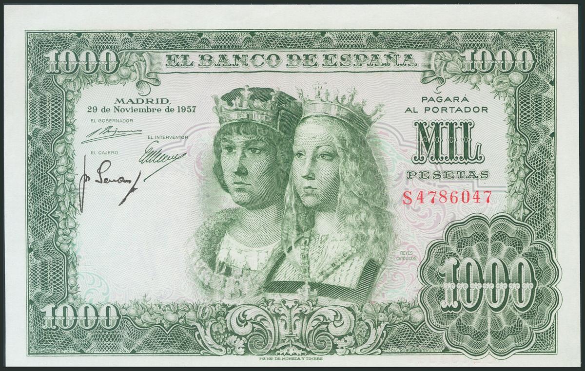 1000 Pesetas. November 29, 1957. Series S. (Edifil 2017: 469b). UNC.