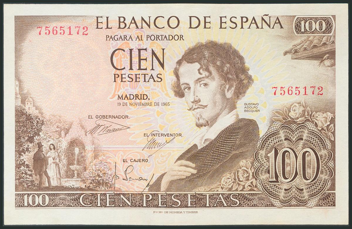 100 Pesetas. November 19, 1965. Without series. (Edifil 2017: 470). UNC.