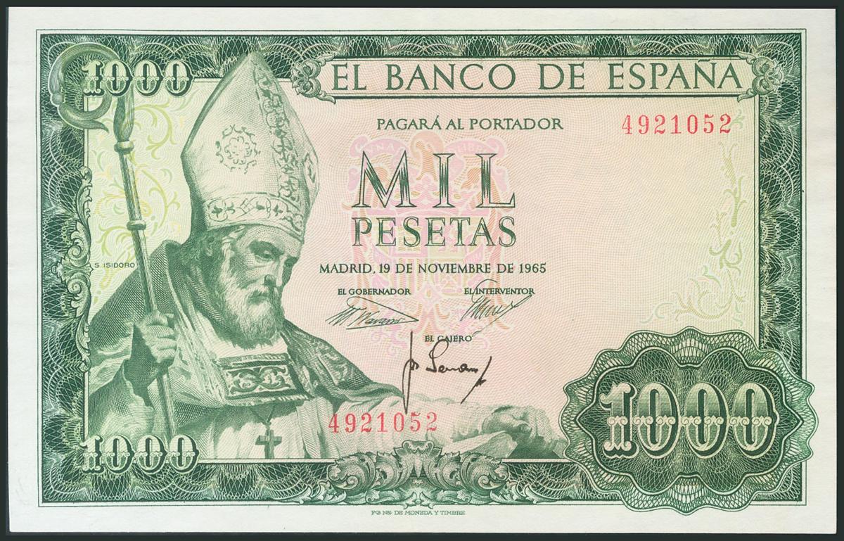 1000 Pesetas. November 19, 1965. Without series. (Edifil 2017: 471). XF.