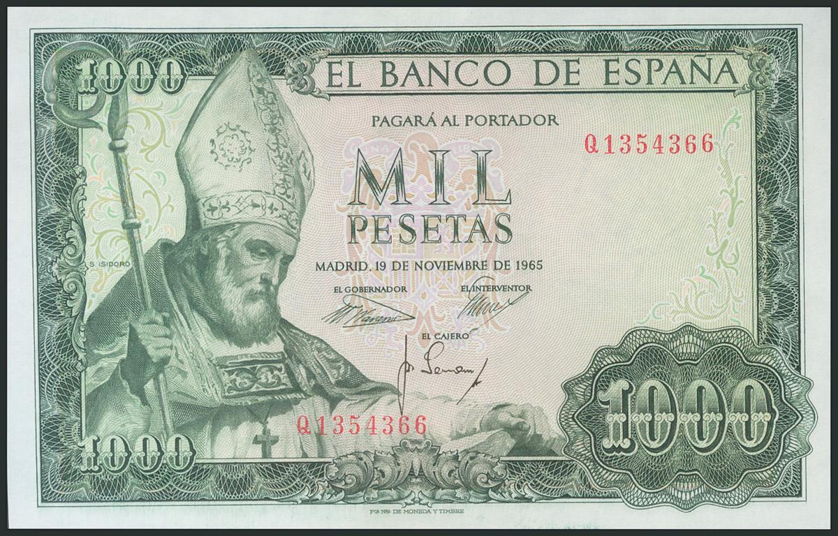 1000 Pesetas. November 19, 1965. Series Q. (Edifil 2017: 471b). It keeps all its original size. UNC.