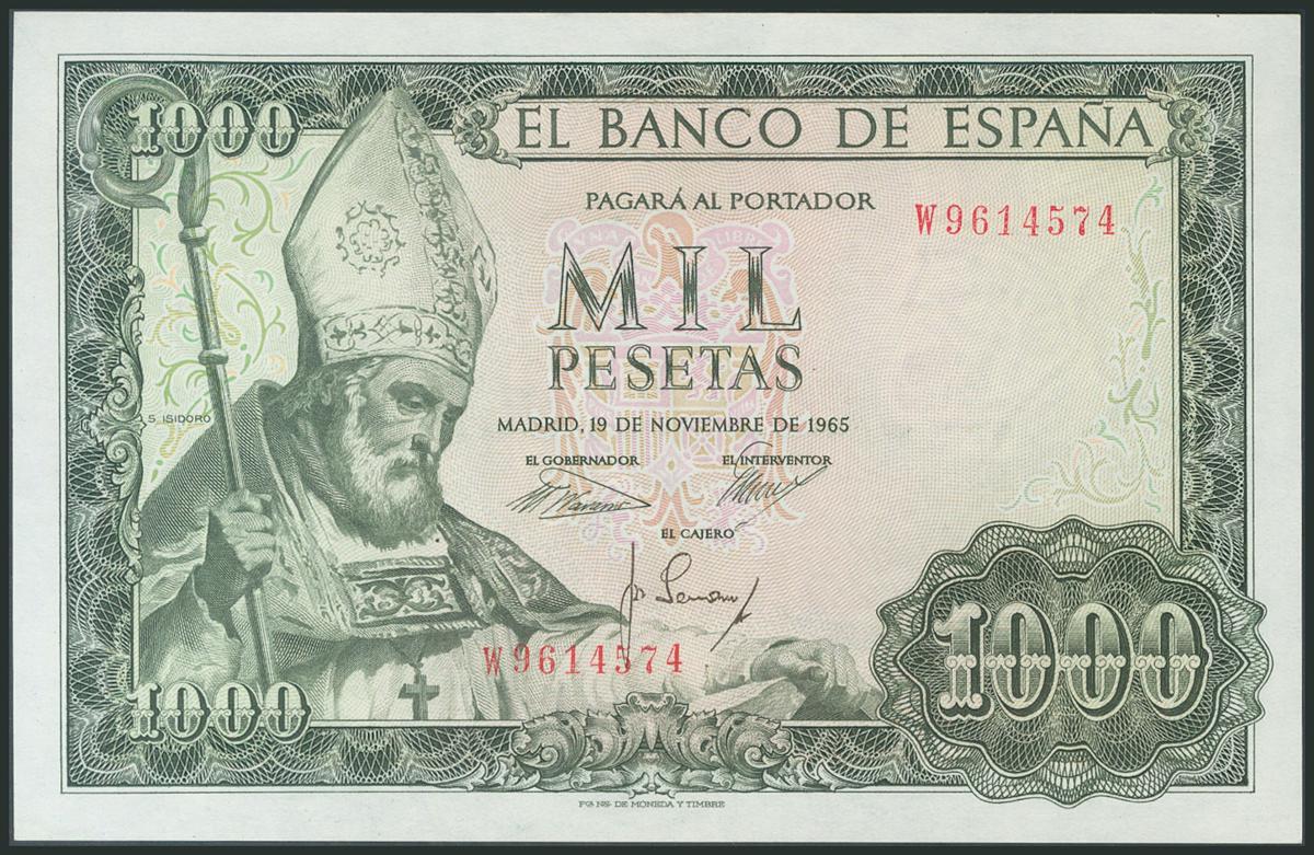 1000 Pesetas. November 19, 1965. Series W. (Edifil 2017: 471b). It keeps all its original size. UNC.