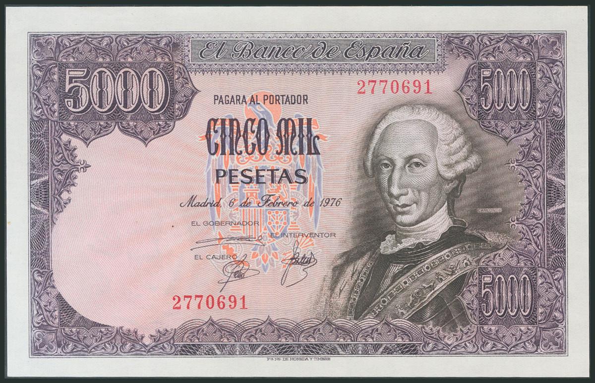 5000 Pesetas. February 6, 1976. Without series. (Edifil 2017: 475). UNC.