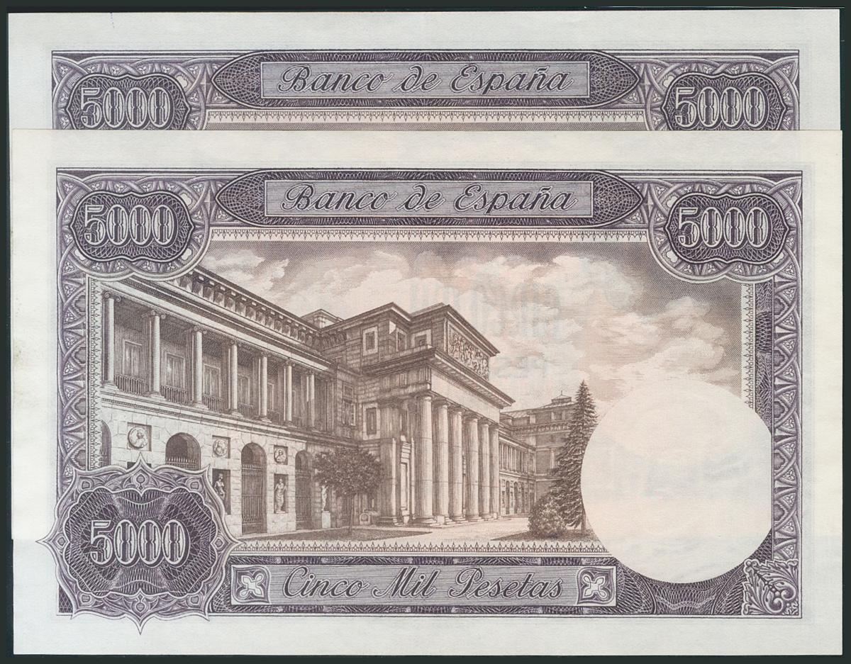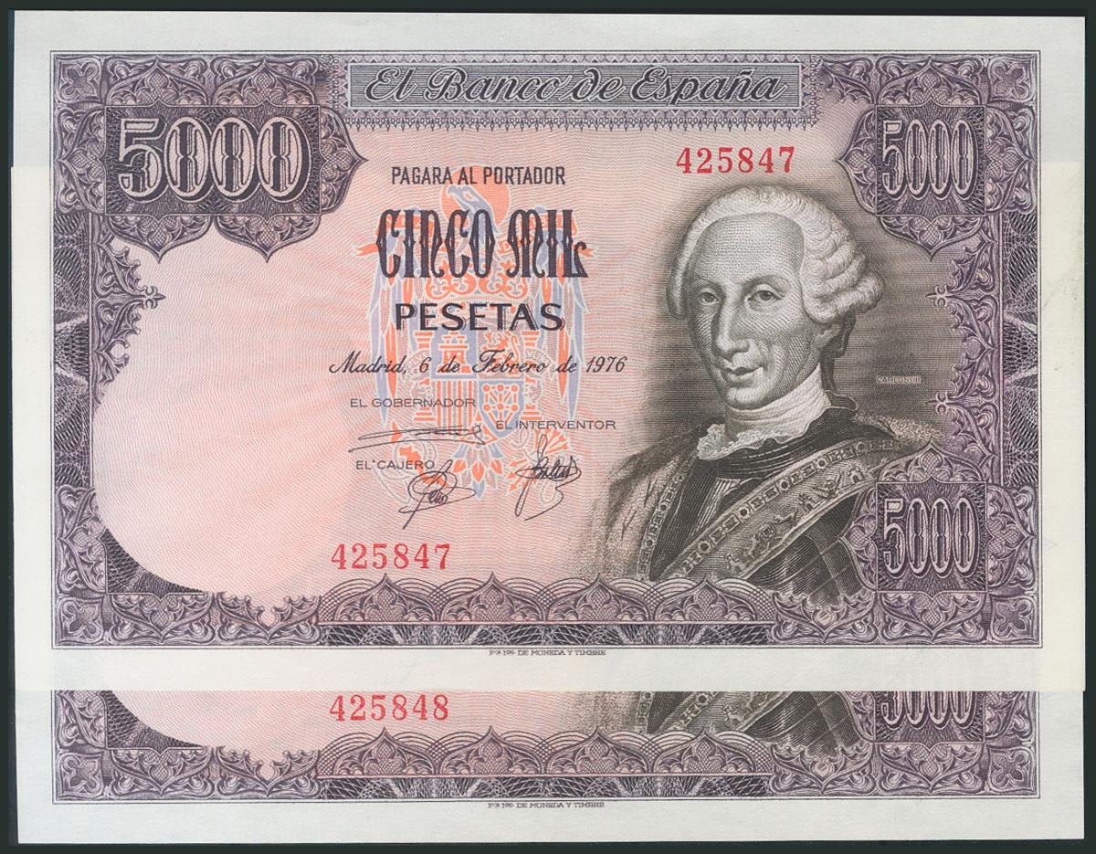 5000 Pesetas. February 6, 1976. Correlative pair. No serie. (Edifil 2017: 475). AU.