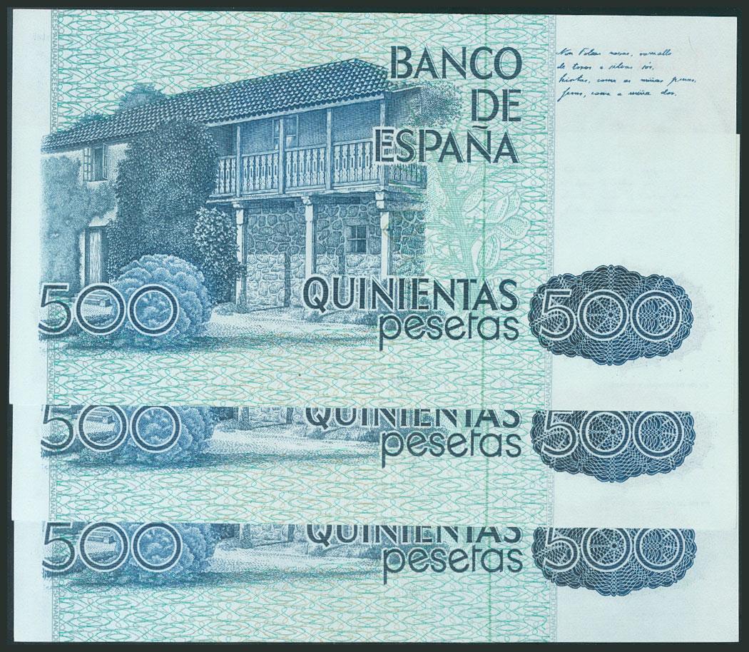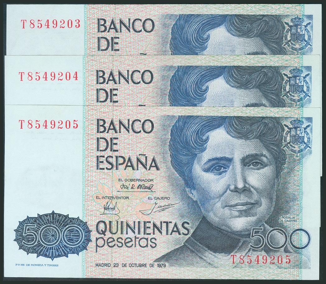 English 500 pesetas. October 23, 1979. Correlative trio. Series T. (Edifil 2017: 476a). UNC.