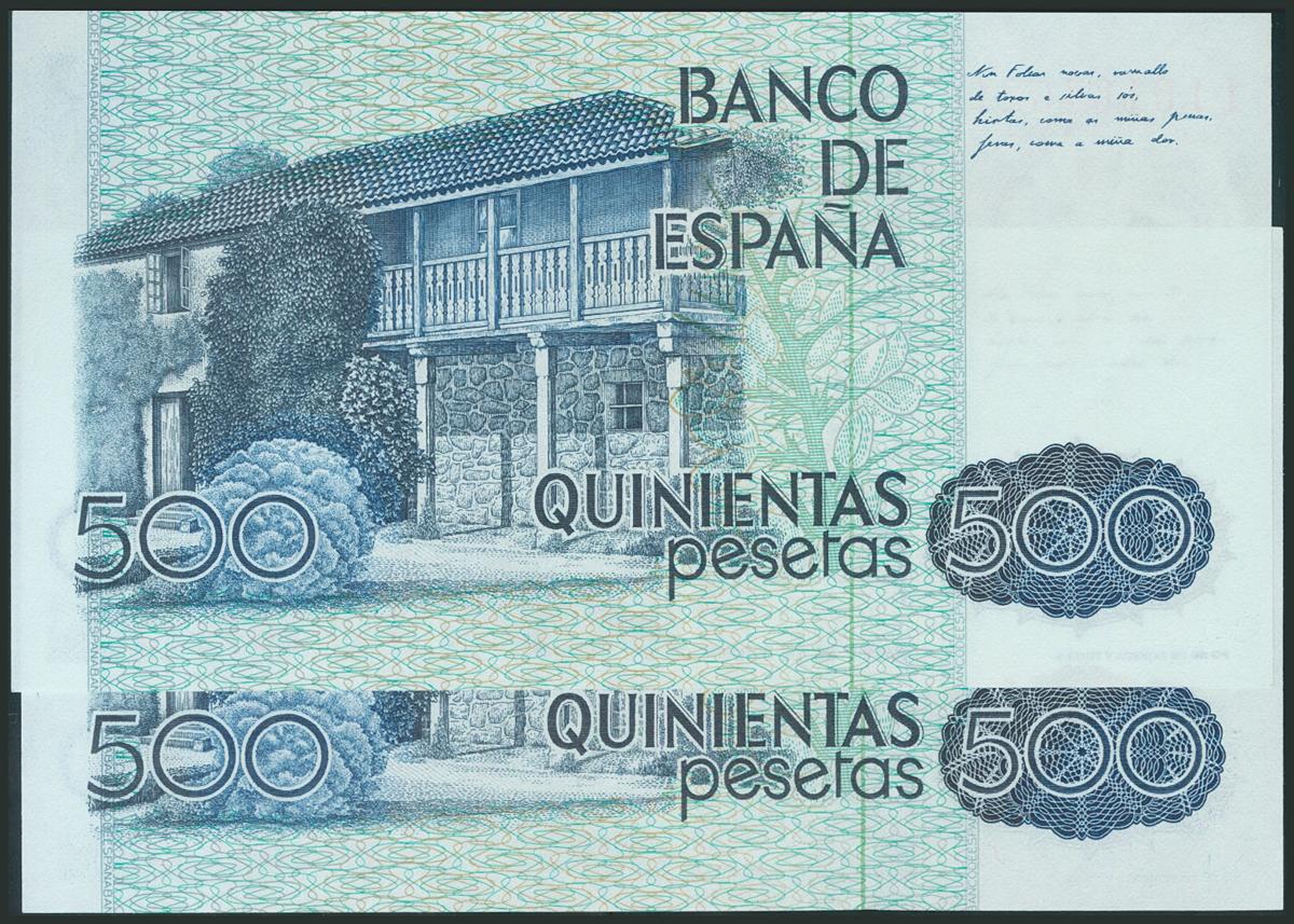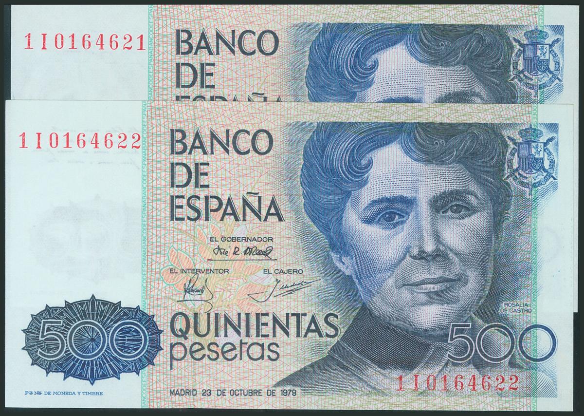 500 pesetas. October 23, 1979. Correlative couple. Series 1I. (Edifil 2017: 476a). UNC.