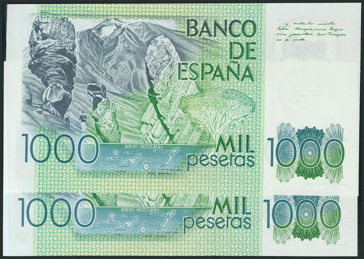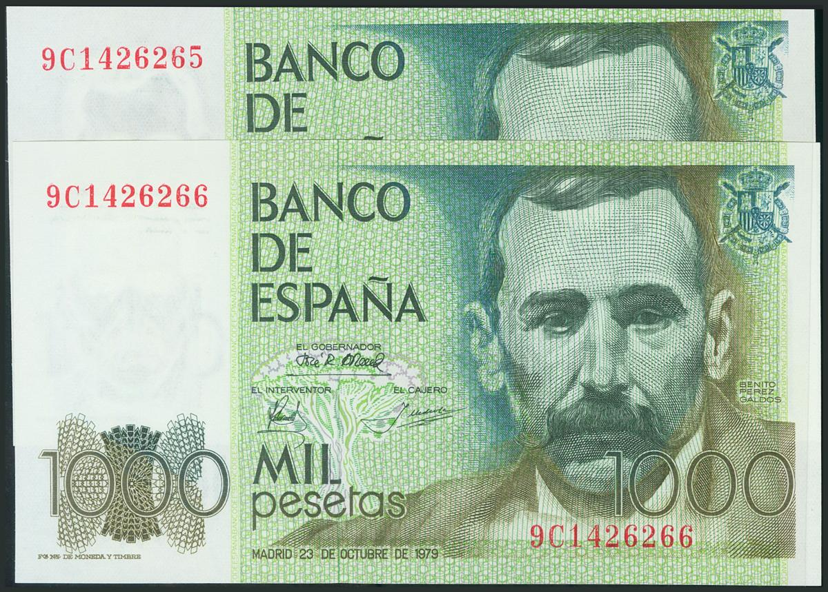 English 1000 Pesetas. October 23, 1979. Correlative couple. Series 9C, special numbering. (Edifil 2017: 477b). Unusual UNC.