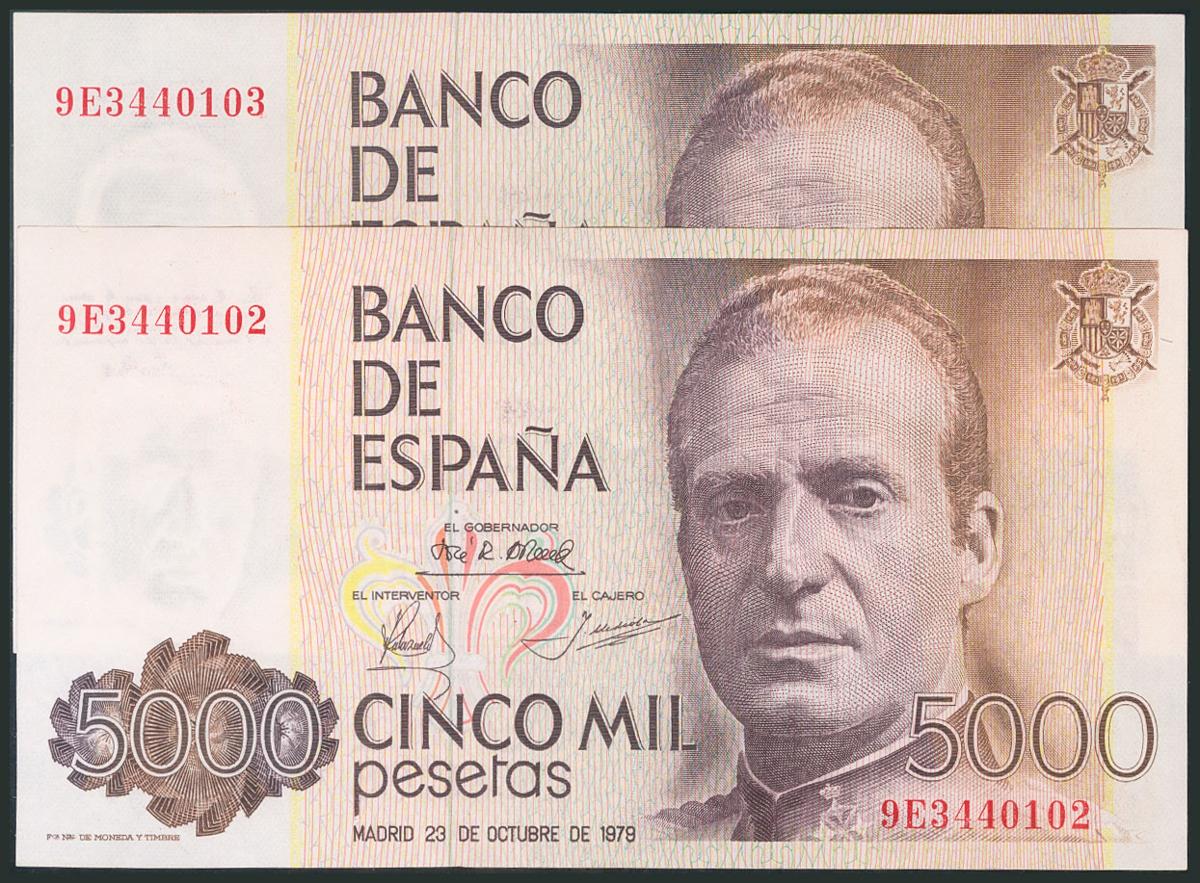 5000 Pesetas. October 23, 1979. Correlative couple. Series 9E. (Edifil 2017: 478b). UNC/ AU.