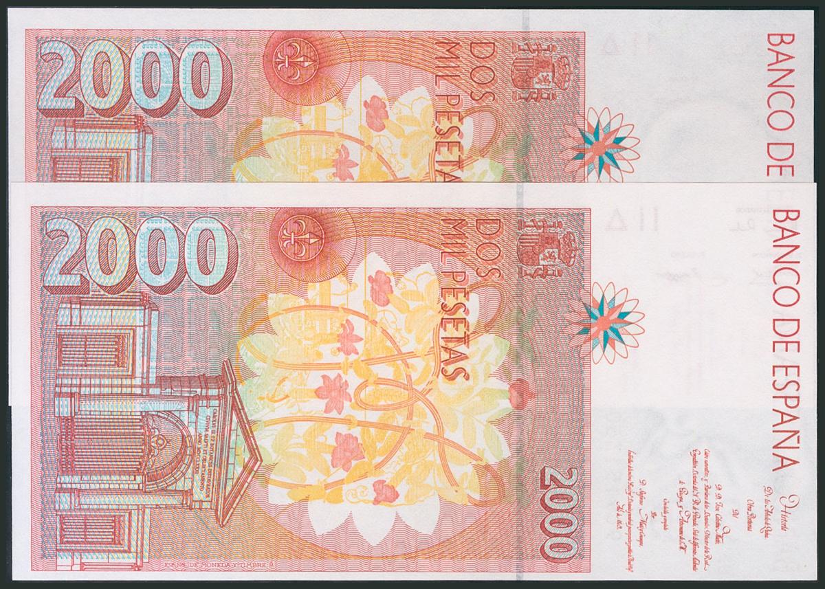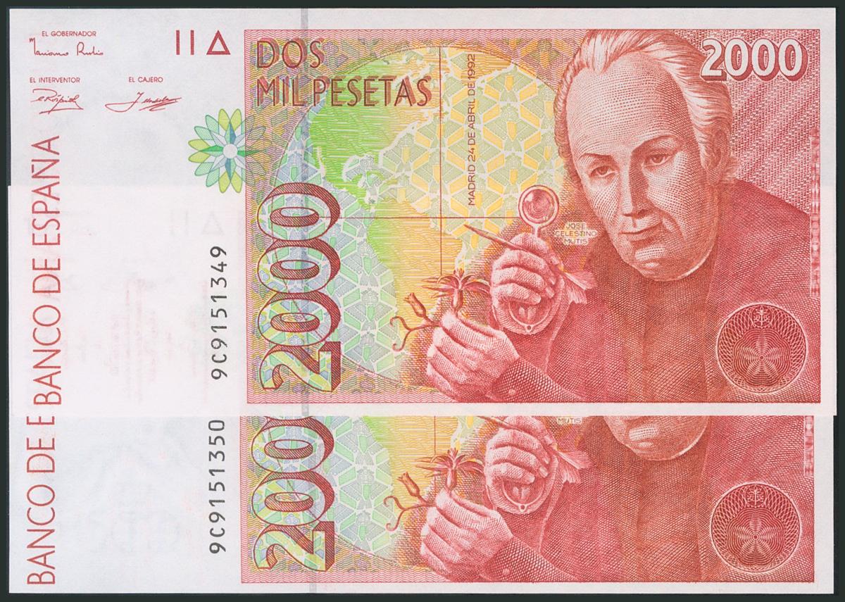 2000 pesetas. April 24, 1992. Correlative couple. 9C special series. (Edifil 2017: 482Ab). UNC.