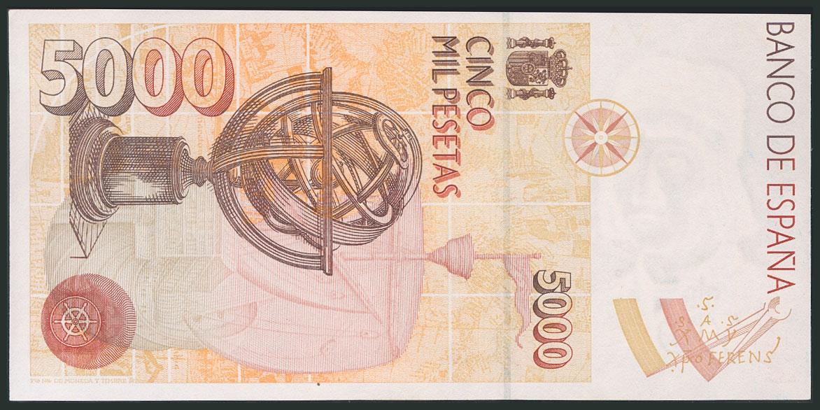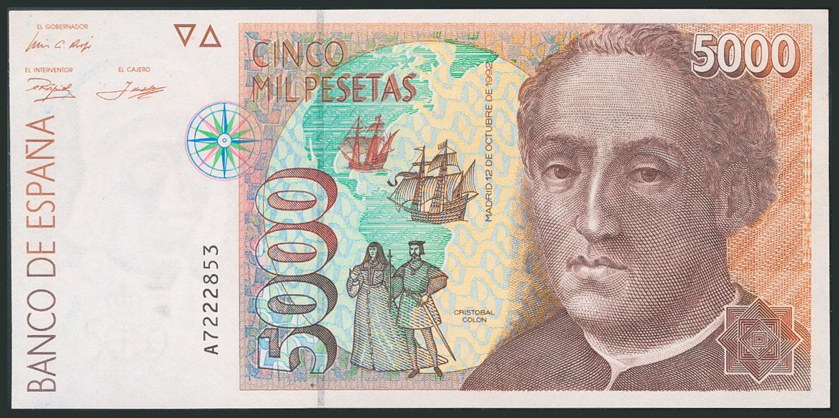 5000 Pesetas. October 12, 1992. Series A. (Edifil 484a). UNC.