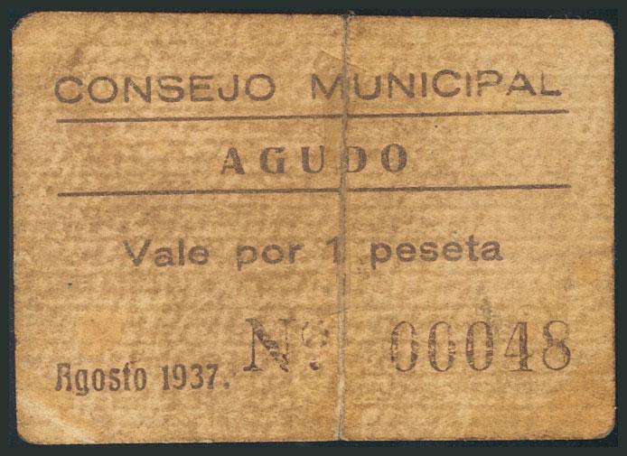 ACUDO (CIUDAD-REAL). 1 peseta. August 1937. (González: 83). Very rare. FR2.