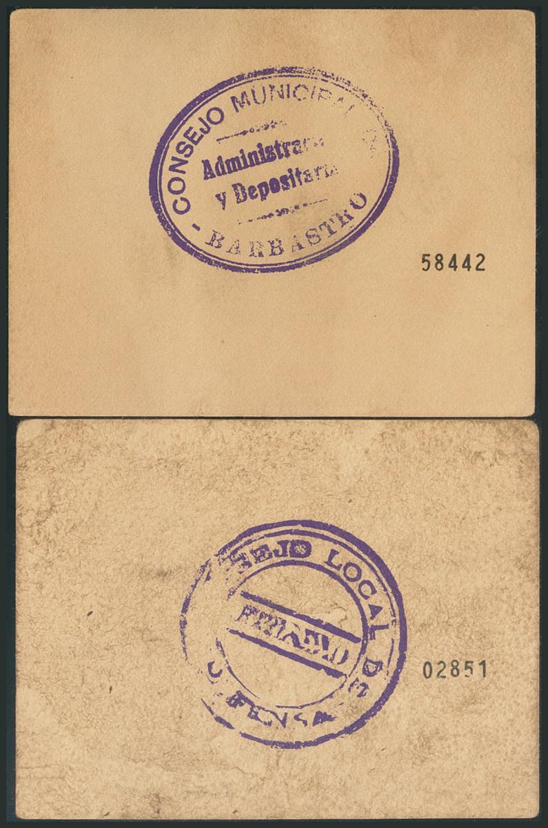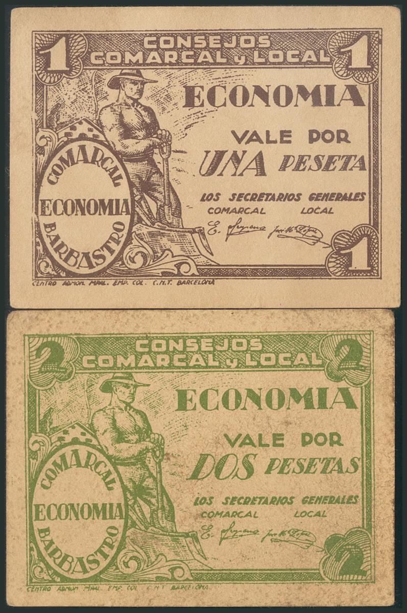 BARBASTRO (HUESCA). 1 Peseta and 2 Pesetas. August 18, 1937. (González: 883/84). AU.