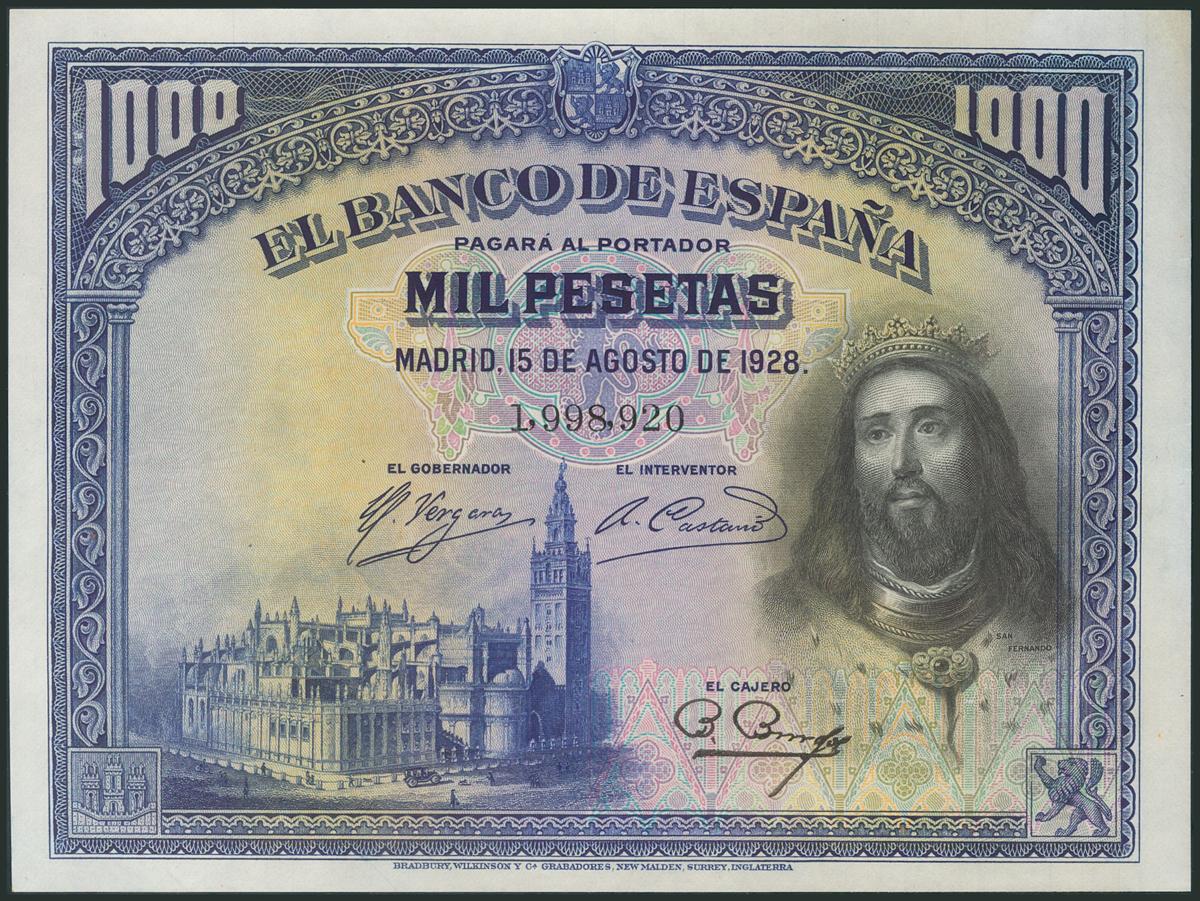 1000 Pesetas. August 15, 1928. Without series. (Edifil 2017: 357). AU.
