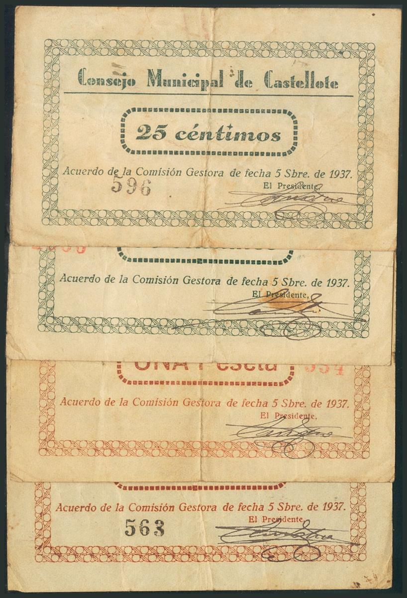 English CASTELLOTE (TERUEL). 25 Cents, 50 Cents, 1 Peseta and 2 Pesetas. September 5, 1937. (González: 1791/94). Rare complete series. F.