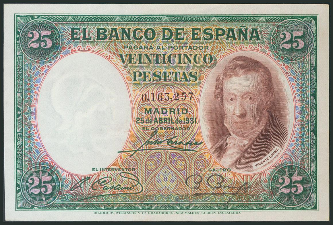 25 pesetas. April 25, 1931. Without series. (Edifil 2017: 358). Retains much of the original size. AU.