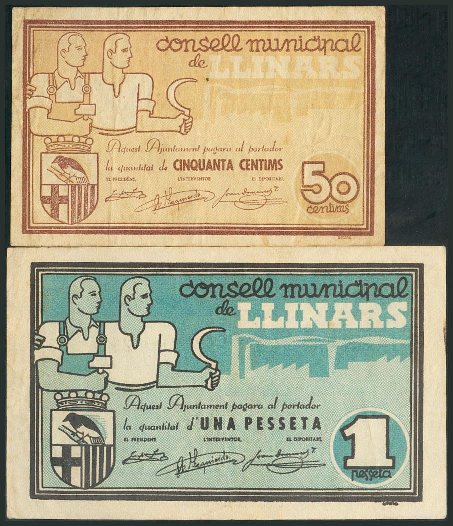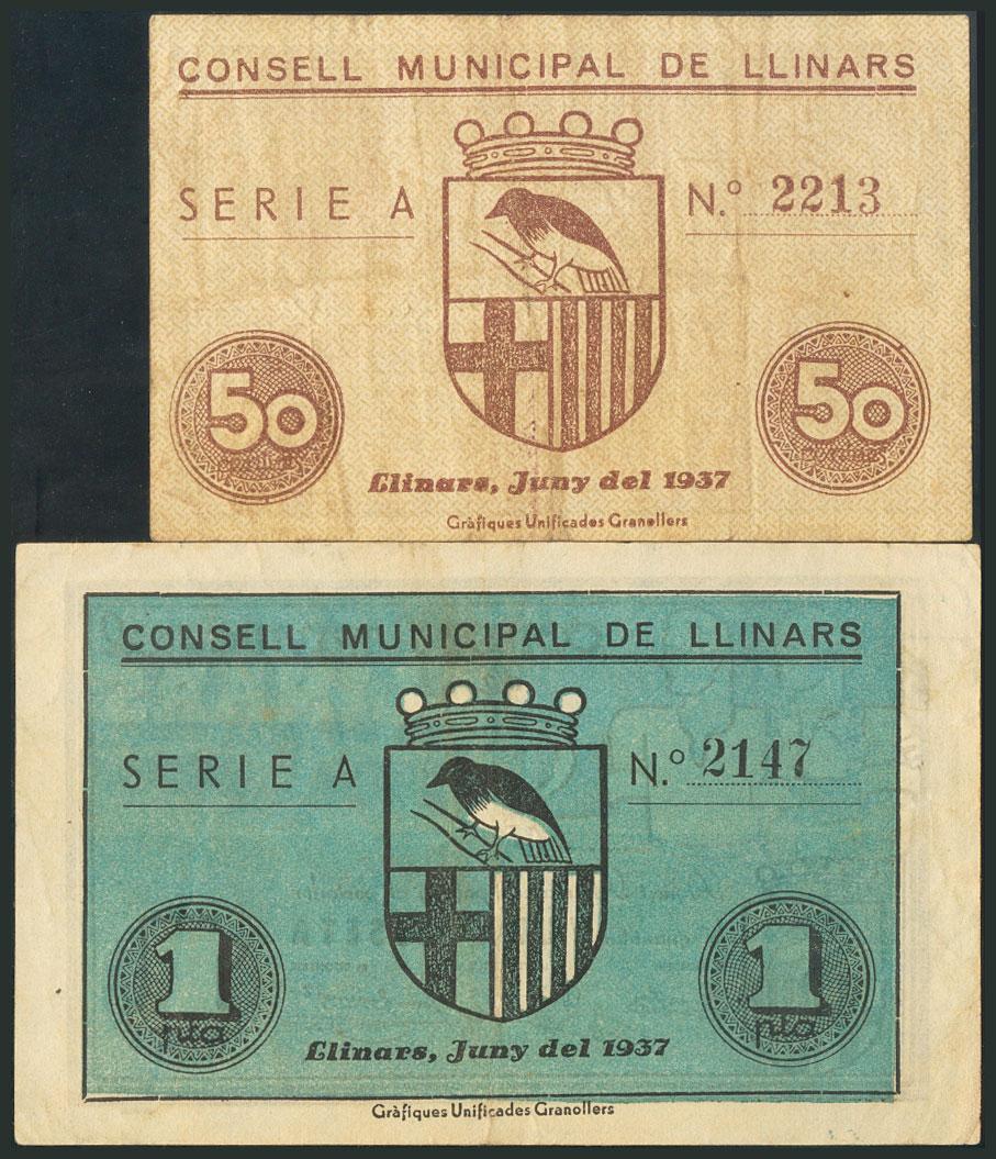 LLINARS DEL VALLES (BARCELONA). 50 Cents and 1 Peseta. June 1937. Series A. (González: 8405/06). F.