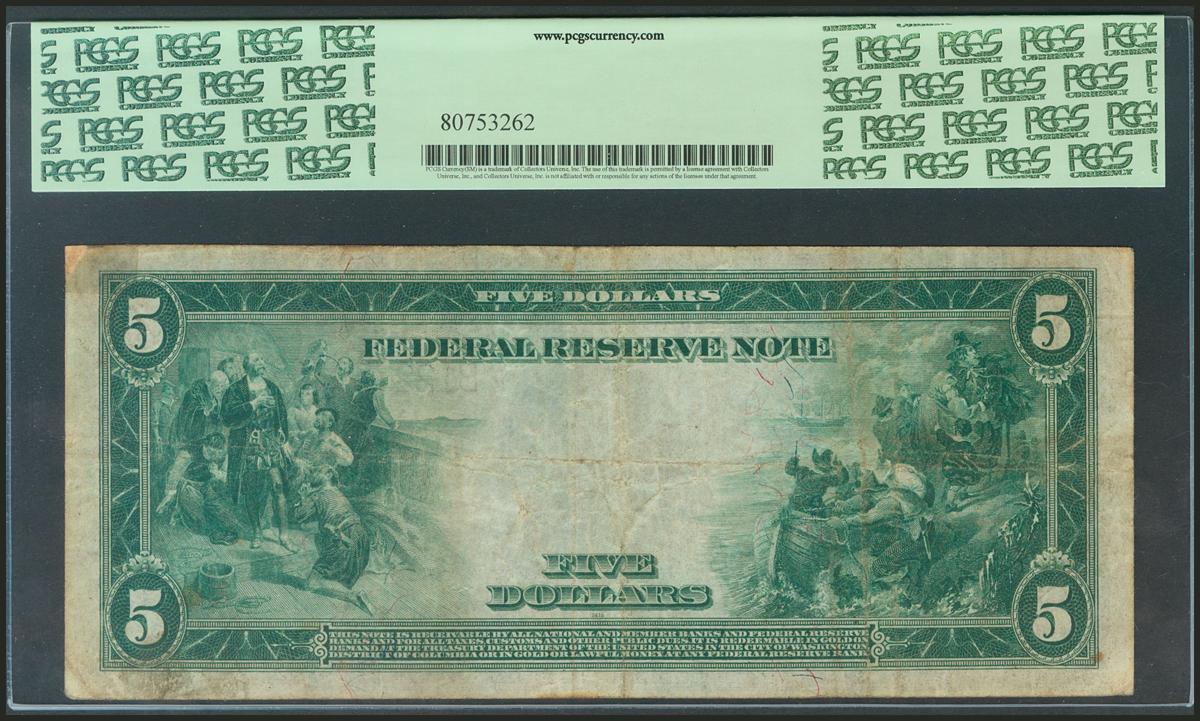USA. 5 Dollars. Federal Reserve Note. New York. Serial number B-B. 1914. (Friedberg: 850). PCGS20.